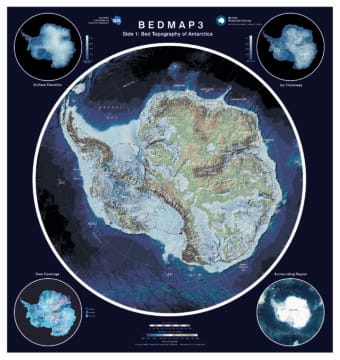 İngiliz Antarktika Araştırmaları Enstitüsü (BAS), Antarktika’nın buzullar olmasaydı nasıl görüneceğine dair bugüne kadarki en kapsamlı haritayı hazırladı. Enstitünün 60 yıllık hava fotoğrafları, uydu görüntüleri, gemi gözlemleri ve köpeklerin çektiği kızaklarla yapılan keşiflerden derlediği verilerle oluşturduğu “Bedmap3” haritası, kıtanın buz altındaki sırlarını ortaya çıkardı.