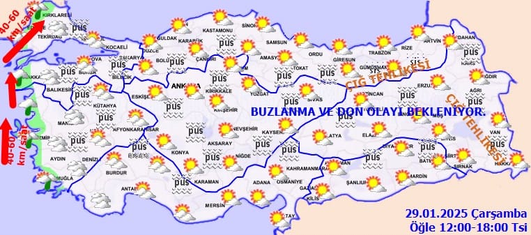 Doğu Karadeniz’in iç kesimlerinin yüksekleri ile Doğu Anadolu’nun doğusunun dik ve eğimli yamaçlarında çığ tehlikesi ile yurdun iç ve doğu kesimlerinde buzlanma ve don olayı beklendiğinden ulaşımda meydana gelebilecek olumsuzluklara karşı dikkatli ve tedbirli olunması gerekmektedir.