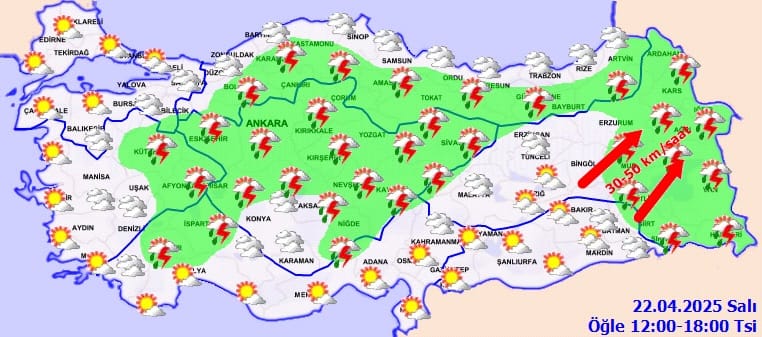Rüzgârın, Doğu Anadolu’nun doğusunda güney ve güneybatıdan kuvvetli (30-50 km/saat) esmesi beklendiğinden yaşanabilecek olumsuzluklara karşı dikkatli ve tedbirli olunması gerekmektedir.