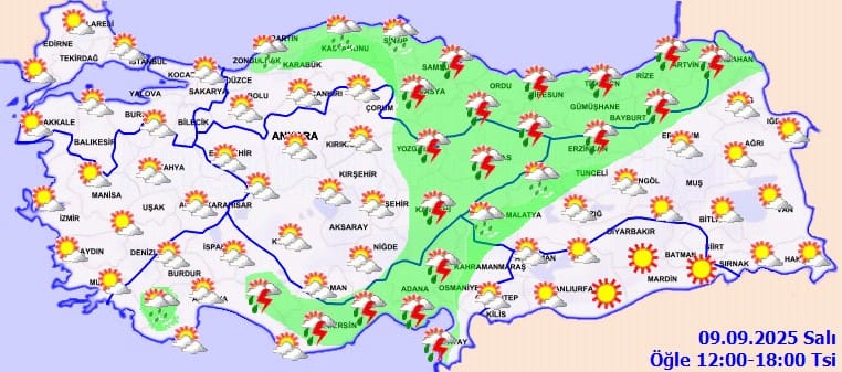 - Yağış Beklenen Bölgeler: Kırklareli ve İstanbul’un kuzey kıyıları, Antalya’nın iç kesimleri, Doğu Akdeniz, İç Anadolu’nun kuzeydoğusu, Batı Karadeniz kıyıları ile Orta ve Doğu Karadeniz bölgelerinde yer yer yağışlar bekleniyor. Karabük, Kastamonu, Malatya, Tunceli, Erzincan ve Ardahan çevreleri ile Erzurum’un kuzey kesimlerinde de sağanak yağışlar görülebilir.