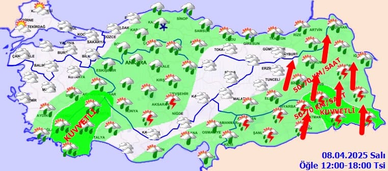 Rüzgârın, Doğu Karadeniz’in iç kesimleri ile Doğu ve Güneydoğu Anadolu’nun doğusunda kuvvetli ve kısa süreli fırtına (40-70 km/saat) şeklinde esmesi beklendiğinden yaşanabilecek olumsuzluklara karşı dikkatli ve tedbirli olunması gerekmektedir.