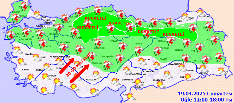 Rüzgarın, öğle saatlerinde güney yönlerden İç Anadolu’nun güney kesimlerinde (30-50 km/saat) kuvvetli esmesi beklendiğinden dolayı yaşanabilecek olumsuzluklara karşi dikkatli ve tedbirli olunmalıdır.