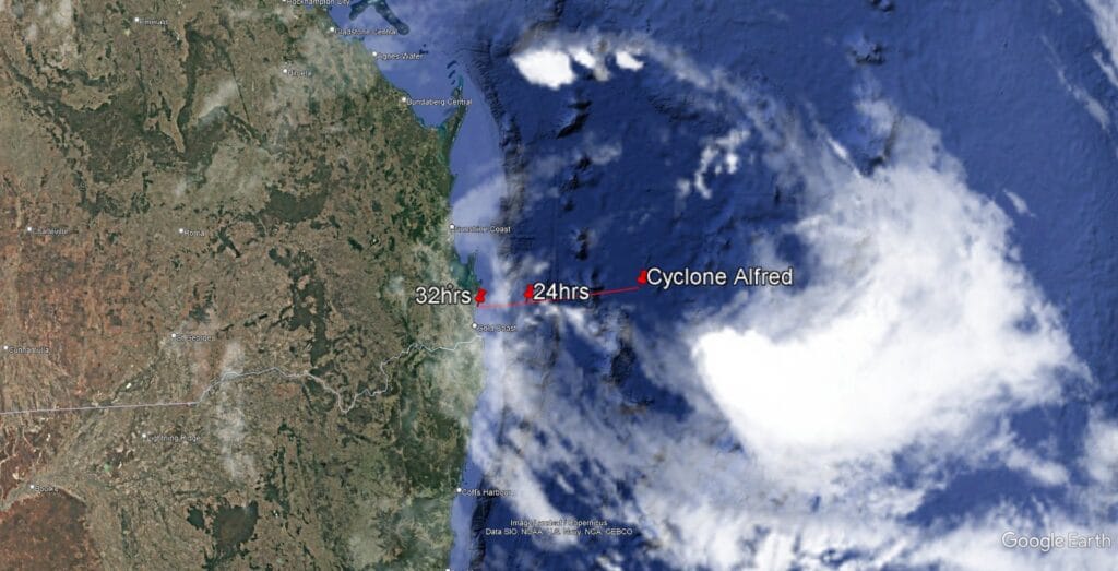 Avustralya Meteoroloji Bürosu’na (BOM) göre Alfred’in Perşembe gecesi ile Cuma sabahı arasında karaya ulaşması bekleniyor.