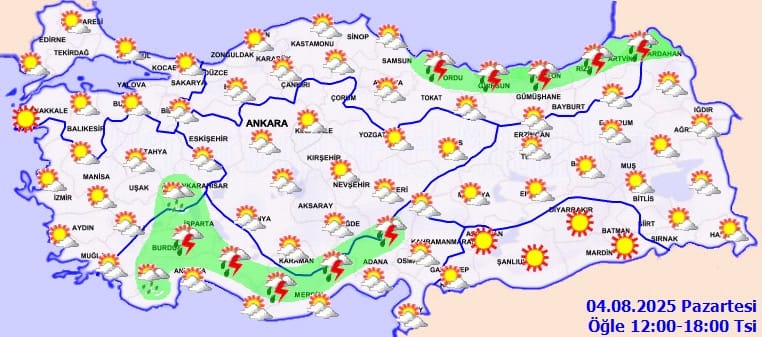Parçalı bulutlu, öğle saatlerinden sonra yerel olmak üzere sağanak ve gök gürültülü sağanak yağışlı
