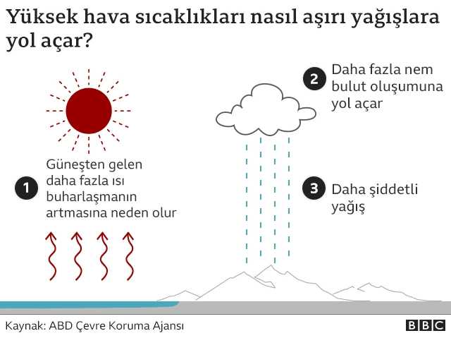 Ancak sıcaklıklar yoğunlaştıkça atmosferdeki buhar da artıyor. Bu yüzden yağışlar da şiddetleniyor.