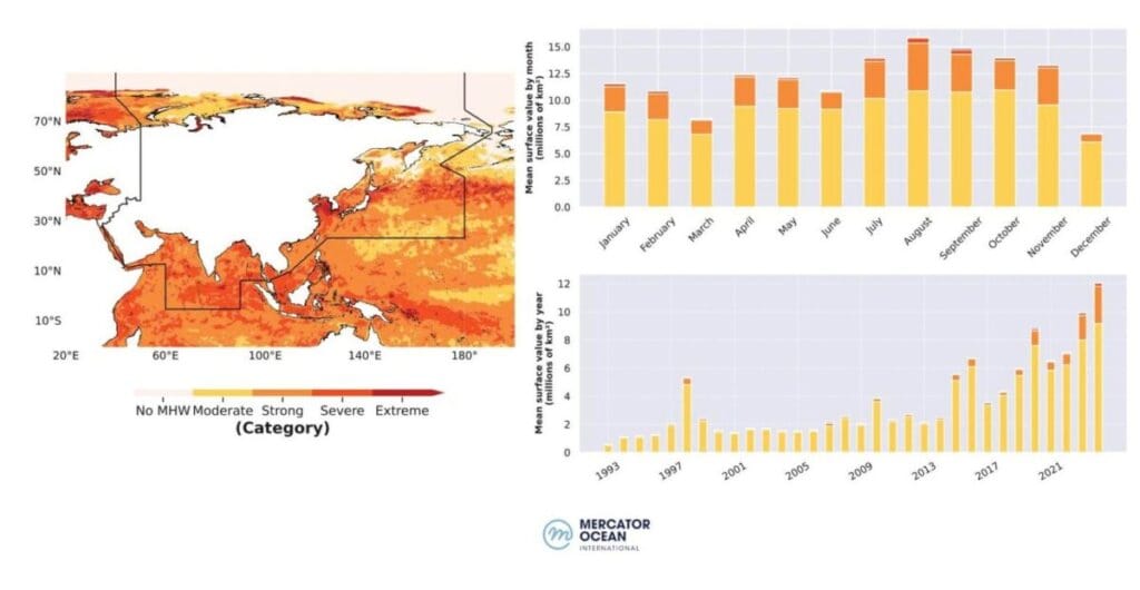 2024 yılında, bölgedeki okyanus alanlarının büyük kısmı, 1993’te kayıtların tutulmaya başlanmasından bu yana en büyük etkiyi oluşturan güçlü, şiddetli ve aşırı yoğunluktaki deniz sıcak hava dalgalarından etkilendi. Kuzey Hint Okyanusu, Sarı Deniz ve Doğu Çin Denizi bu etkilerin en yoğun yaşandığı bölgeler oldu.