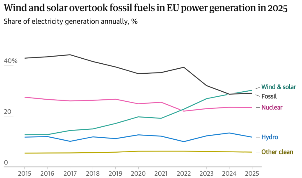 AB, yeşil hedeflerine ulaşmak için her yıl yeterli sayıda güneş paneli ve rüzgar türbini ekliyor, ancak havayı kirleten yabancı yakıtlara bağımlılığını sürdüren benzinli arabaları ve gazlı ısıtıcıları değiştirmekte isteksiz davranıyor.