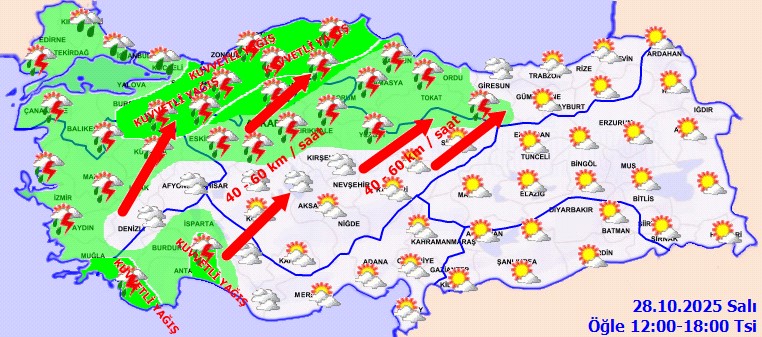 Meteoroloji Genel Müdürlüğü (MGM) tarafından yapılan son tahminlere göre, Türkiye genelinde hava durumu önemli bir dönüşüm sürecine giriyor. Ülke genelinin parçalı ve yer yer çok bulutlu olacağı tahmin edilirken, Marmara, Ege, Batı Akdeniz, İç Anadolu’nun kuzeyi ve Karadeniz bölgeleri sağanak ve gök gürültülü sağanak yağışların etkisi altına giriyor. Yağışların özellikle Batı Karadeniz, Sakarya, Bilecik, Muğla, Bursa, Yalova, Antalya’nın doğusu, Ankara’nın kuzey ve batısı ile Çankırı çevrelerinde yerel kuvvetli olması bekleniyor.