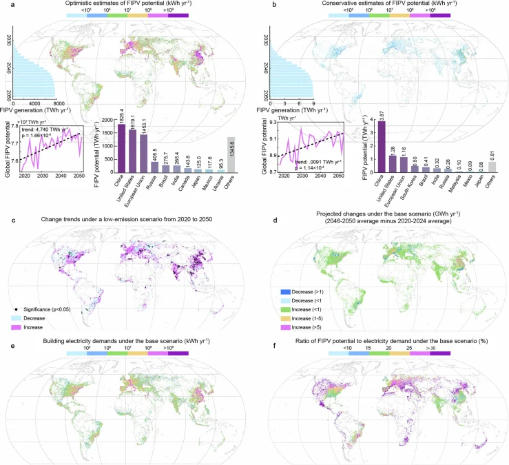 Araştırmacılar, en olası uygulama senaryosunu varsayarak FIPV’nin dünya çapında yılda yaklaşık 732,5 TWh elektrik üretebileceğini ve binaların elektrik talebini ortalama yüzde 8,1 oranında azaltabileceğini sonucuna vardılar. Bu birleşik faydaların anlamlı ekonomik ve iklim kazanımlarına dönüşebileceği ve simüle edilen bölgelerin yüzde 80’inden fazlasında net ömür boyu elektrik harcamalarında azalma görüldüğü gösterildi.