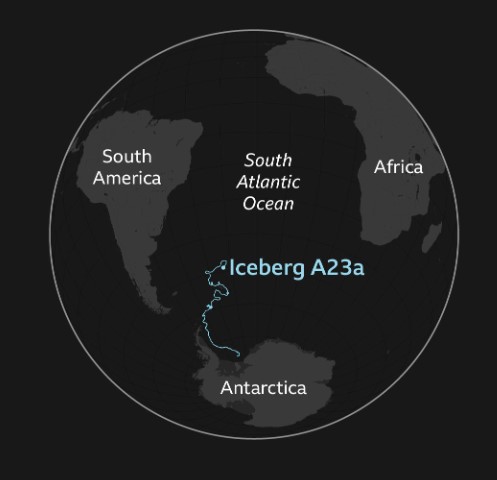1986’da Filchner Buz Sahanlığı’ndan kopan dev parça, yaklaşık 4.000 km²’lik alanıyla yıllarca dünyanın en büyük buzdağıydı. Weddell Denizi’nin sığlarında karaya oturan A23a, 30 yılı aşkın süre yerinden kıpırdamadı. 2020’de yeniden hareket emareleri görüldü; 2022’de Antarktika Yarımadası boyunca “Buzdağı Geçidi”ne (Iceberg Alley) girerek Güney Orkney Adaları’na doğru ilerledi. Burada Taylor Sütunu adı verilen dönen bir su girdabına kapılan A23a sekiz ay boyunca yerinde dönüp durdu; ardından Güney Georgia yakınlarında birkaç ay daha takılı kaldı ve yeniden serbest kaldı.