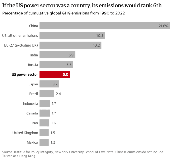 Ancak New York Üniversitesi Politika Bütünlüğü Enstitüsü tarafından hazırlanan yeni bir analiz, ABD enerji sektörünün küresel karbon salımlarının %5’ine katkıda bulunduğunu ortaya koydu. Eğer enerji sektörü bir ülke olsaydı, dünyanın altıncı en büyük sera gazı salımcısı olurdu ve Japonya, Brezilya, İngiltere ve Kanada gibi ülkelerin toplam yıllık emisyonlarını geride bırakırdı.