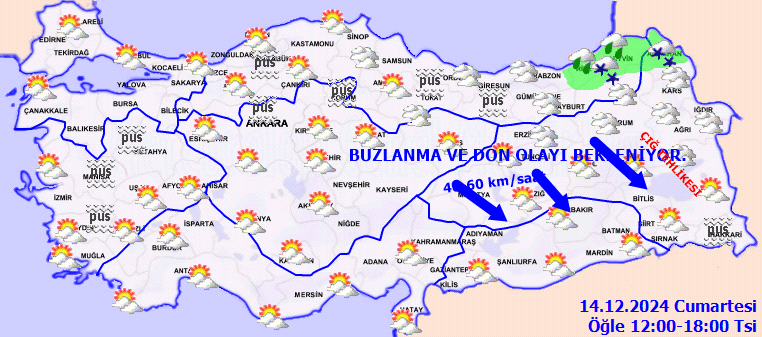 Doğu Karadeniz’in iç kesimleri ile Doğu Anadolu’nun güneydoğusunda dik ve eğimli yamaçlarda çığ tehlikesi ile buzlanma, don ve ulaşımda meydana gelebilecek olumsuzluklara karşı dikkatli ve tedbirli olunmalıdır.