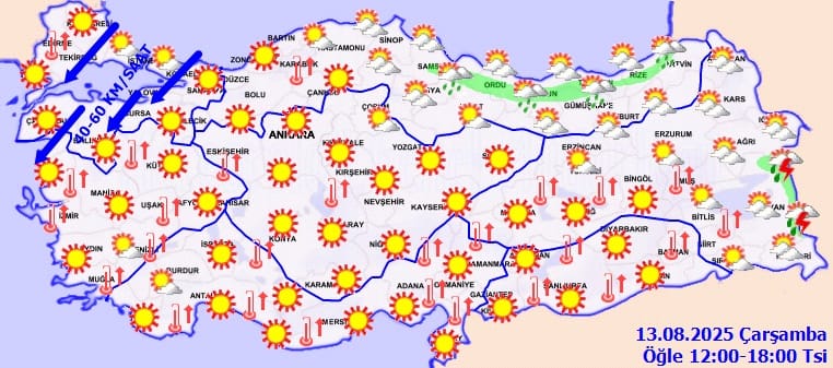 Meteoroloji Genel Müdürlüğü tarafından yapılan tahminlere göre; ülkemizin kuzey ve doğu kesimlerinin parçalı yer yer çok bulutlu, öğle saatlerinde Samsun, Ordu, Giresun, Trabzon ve Rize’nin iç kesimlerinin yüksekleri ile Van’ın doğu ilçelerinin yerel sağanak ve gök gürültülü sağanak yağışlı, diğer yerlerin az bulutlu ve açık geçeceği tahmin ediliyor.