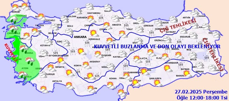 Doğu Karadeniz’in iç kesimlerinin yüksekleri ile Doğu Anadolu’nun doğusunun dik ve eğimli yamaçlarında çığ tehlikesi ile yurdun kuzey, iç ve doğu kesimlerinde yer yer kuvvetli olmak üzere buzlanma ve don olayı beklendiğinden meydana gelebilecek olumsuzluklara karşı dikkatli ve tedbirli olunması gerekmektedir.