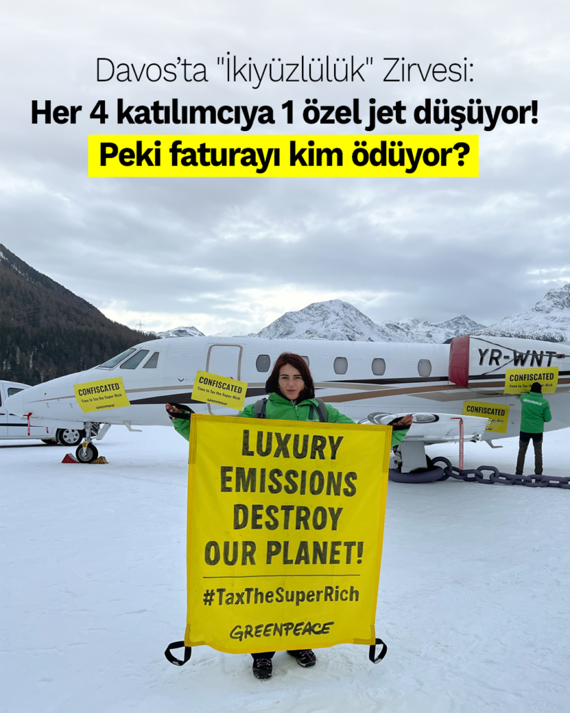 Greenpeace, Davos’taki özel jet trafiğinin yalnızca çevresel değil, aynı zamanda küresel bir adalet meselesi olduğuna dikkat çekiyor. Kuruluşa göre iklim krizine en büyük katkıyı yapan kesimler, yarattıkları tahribatın bedelini ödemiyor.
