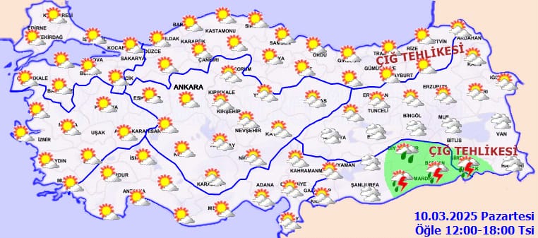 Sabah ve gece saatlerinde doğu bölgelerde buzlanma ve don olayı, Doğu Karadeniz’in iç kesimleri ile Doğu Anadolu’nun yüksek ve eğimli yamaçlarında çığ tehlikesi bulunduğundan heyelan, ulaşımda aksamalar ve kar erimesine bağlı olumsuzluklara karşı ilgililerin ve vatandaşlarımızın dikkatli ve tedbirli olmaları gerekmektedir