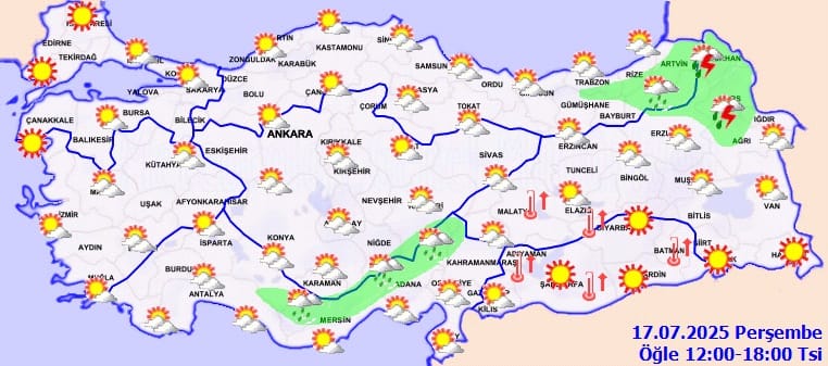 Parçalı, doğusunun yer yer çok bulutlu, Trabzon, Rize ve Artvin’in iç kesimlerinin yerel sağanak ve gök gürültülü sağanak yağışlı geçeceği tahmin ediliyor.