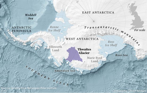 Bilim insanları, Antarktika’daki mevcut keşif gezisinin hedefi olan Thwaites Buzulu için medyada sıkça kullanılan “Kıyamet Buzulu” ifadesini hiçbir zaman benimsemedi. Her ne kadar bu buzul Florida büyüklüğünde olsa ve tamamen erimesi halinde küresel deniz seviyesini yaklaşık 60 santimetre yükseltecek potansiyele sahip bulunsa da, araştırmacılara göre bu senaryo kaçınılmaz değil.