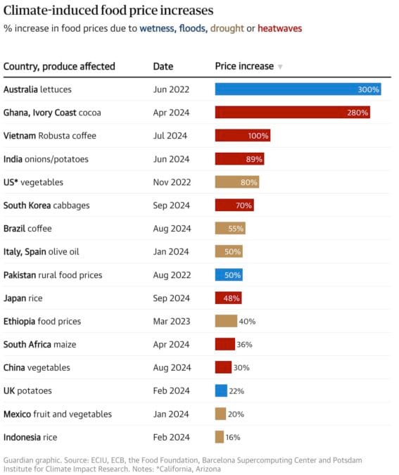 İngiltere Enerji ve İklim İstihbarat Birimi (ECIU), Avrupa Merkez Bankası (ECB), Gıda Vakfı, Barselona Süper Bilgisayar Merkezi ve Potsdam İklim Etkisi Araştırma Enstitüsü’nden oluşan bir ekibin raporuna göre, temel gıda maddelerindeki yüksek fiyatlar, düşük gelirli hanelerin pahalı meyve ve sebze tüketimini azaltmasıyla halk sağlığını olumsuz etkileyebilir.