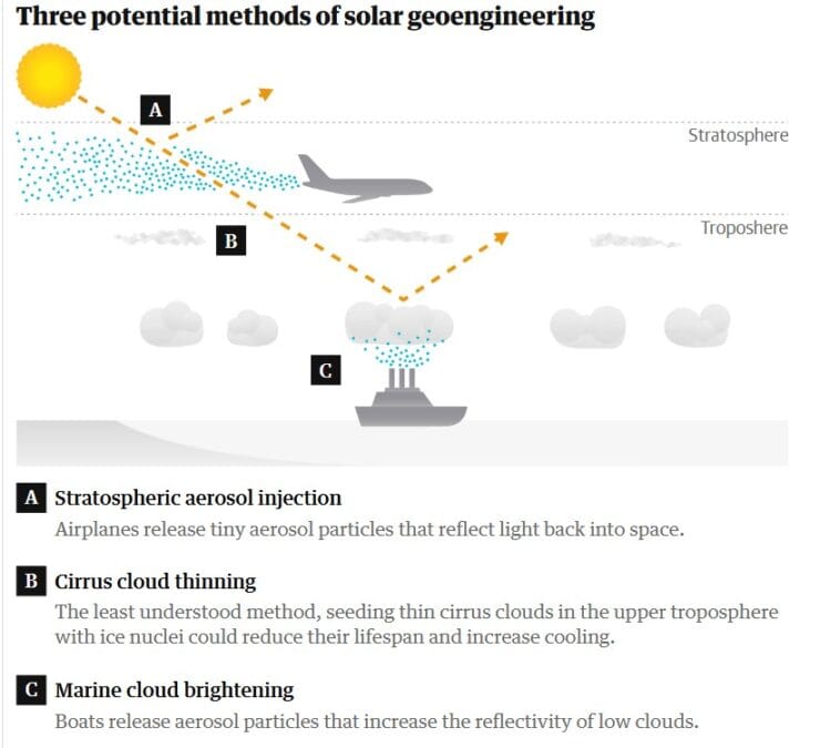 Bazı kıdemli bilim insanları, SRM (Solar Radiation Management) yani güneş radyasyonu yönetiminin emisyon azaltma hedeflerinden sapmaya neden olabileceğini savunarak, bu tür teknolojileri “tehlikeli bir dikkat dağıtıcı” olarak nitelendiriyor. SRM, bazı bilim insanları tarafından “aspirinle kanser tedavisi” yapmaya benzetiliyor.