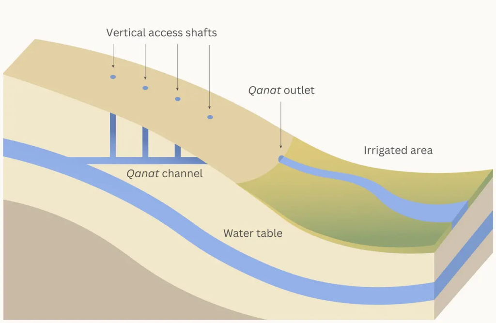 İran, aslında dünyada su yönetimi denince akla gelen en köklü medeniyetlerden biridir. “Kanat” (qanat) adı verilen ve yer çekimiyle su taşıyan 2500 yıllık antik tünel sistemleri, İran’ın kurak coğrafyasında binlerce yıl boyunca yaşamı mümkün kılmıştı. Ancak son 40 yılda, “gıda öz yeterliliği” hedefiyle açılan 1 milyondan fazla derin kuyu, bu antik sistemin sonunu getirdi.