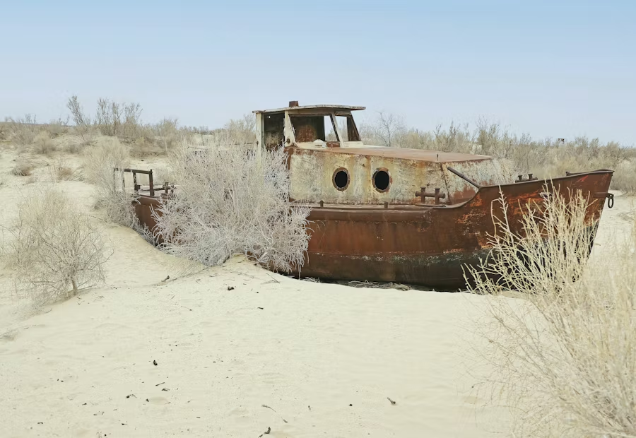 Bir zamanlar dünyanın dördüncü büyük gölü olan Aral Denizi, Sovyet döneminde yapılan sulama projeleri nedeniyle dramatik biçimde küçülmüş ve küresel çevre felaketlerinin sembolü haline gelmişti.