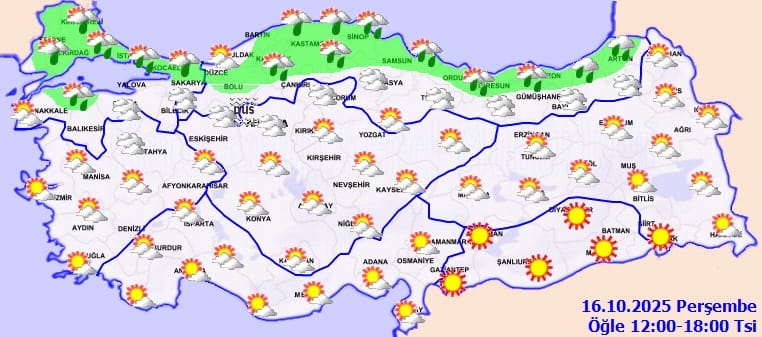 - Karadeniz: Kıyılarda sağanak, iç kesimlerde sis bekleniyor.