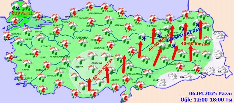 Rüzgârın, güneyli yönlerden Akdeniz’in iç kesimleri, İç Anadolu’nun güney ve doğusu ile Doğu Anadolu’da yer yer kuvvetli (40-60 km/sa) esmesi beklendiğinden yaşanabilecek olumsuzluklara karşı dikkatli ve tedbirli olunması gerekmektedir.