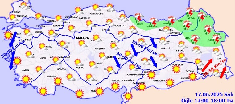 Rüzgârın, Kuzey Ege kıyıları, İç Anadolu’nun doğusu ve Doğu Anadolu’nun batısında kuzeyli yönlerden, Doğu Anadolu’nun güneydoğusunda güneyli yönlerden kuvvetli (30-50 km/saat) esmesi beklendiğinden yaşanabilecek olumsuzluklara karşı dikkatli ve tedbirli olunması gerekmektedir.