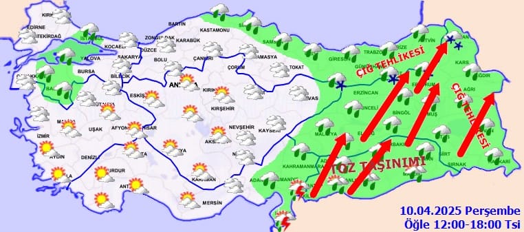 Meteoroloji Genel Müdürlüğü tarafından yapılan tahminlere göre: Ülkemiz genelinin parçalı ve çok bulutlu, Marmara, Doğu Akdeniz (Mersin hariç), İç Anadolu’nun doğusu, Batı Karadeniz, Orta Karadeniz kıyıları, Doğu Karadeniz, Doğu ve Güneydoğu Anadolu ile İzmir, Manisa, Kütahya, Eskişehir, Ankara, ve Tokat çevrelerinin aralıklı yağışlı geçeceği tahmin ediliyor. Yağışların yağmur ve sağanak, Güney kesimlerde yer yer gök gürültülü sağanak, Batı Karadeniz’in iç kesimleri, İç Anadolu’nun doğusu, Doğu Anadolu’nun kuzeydoğusu ile Bilecik, Kütahya, Eskişehir ve Ankara çevrelerinde karla karışık yağmur ve kar şeklinde görülmesi beklenen yağışların gece saatlerinden sonra Batı Karadeniz ile Sakarya çevrelerinde yerel kuvvetli olması bekleniyor. Rüzgarın, Doğu Anadolu’nun doğusu, Güneydoğu Anadolu ile Elazığ ve Hatay çevrelerinde kuvvetli rüzgar ve fırtına (50-80 km/saat, yükseklerinde 90 km/saat) şeklinde eseceği tahmin ediliyor. Doğu Anadolu’nun güneydoğusu ve Güneydoğu Anadolu bölgesinde toz taşınımı bekleniyor.