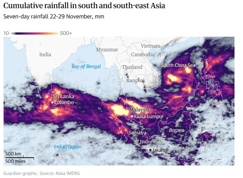 Dünya Meteoroloji Örgütü (WMO) sözcüsü Clare Nullis’e göre, Endonezya, Sri Lanka, Tayland, Vietnam ve Filipinler gibi ülkeler, “muson kaynaklı yağışlar ve tropikal siklon kombinasyonundan” en çok etkilenenler arasında yer alıyor.
