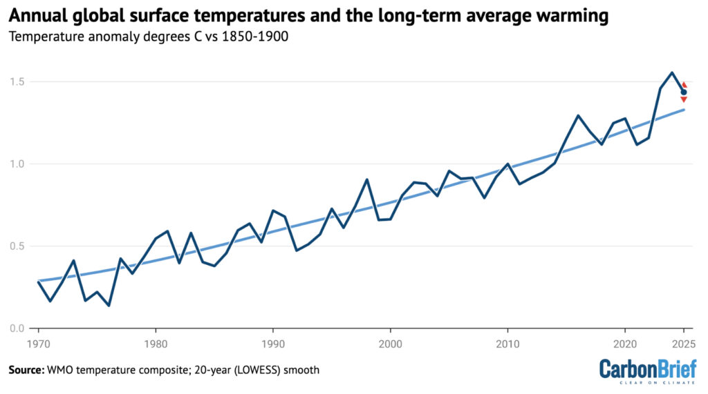 1970 ile 2014 yılları arasında küresel yüzey sıcaklıkları istikrarlı bir oranda artmıştı. Ancak 2023-2025 yılları arasındaki artışlar, uzun vadeli trendin oldukça dışına çıkarak, bu dönemde beklenenden çok daha sıcak geçeceğini gösteriyordu. Örneğin, 2024 yılının beklenenden yaklaşık 0,25°C daha sıcak geçeceği tahmin ediliyordu.