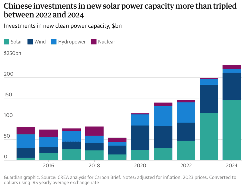 Carbon Brief’ten Simon Evans, Çin’in bu alandaki yatırımlarının uzun yıllardır devam ettiğini vurguladı:
