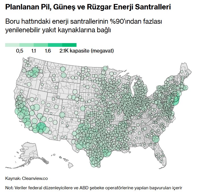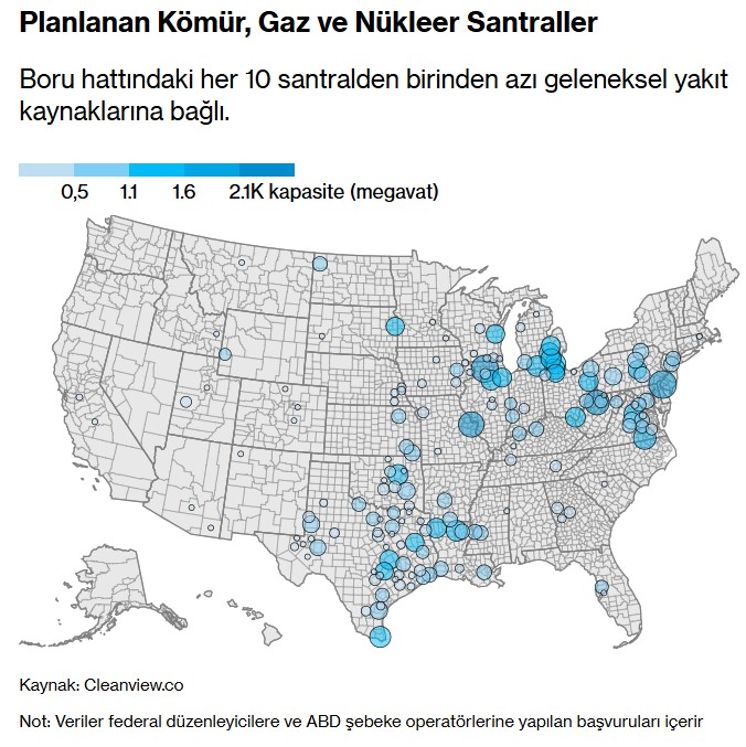 Enerji veri şirketlerine göre, federal düzenleyicilere sunulan planlanan santral kapasitesinin yaklaşık %80’i yenilenebilir kaynaklara (güneş, rüzgar) bağlı. Buna karşılık, Trump’ın yapay zeka artışını desteklemek için tercih ettiği doğal gaz ve nükleer tesislere yönelik başvurular, planlanan kapasitenin sadece %14’ünü oluşturuyor.