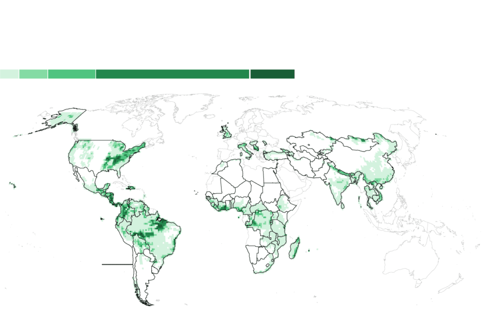 Bu haritalar, doğu ABD’den batı Kanada’ya, Brezilya ve Kolombiya’dan Avrupa’ya kadar uzanan 195 milyon hektarlık bir alanı kapsıyor. Bu alan ormanlaştırılırsa, yılda 2,2 milyar ton CO2 emilimi sağlanabilir. Bu miktar, Avrupa Birliği’nin yıllık karbon salımına yakın.