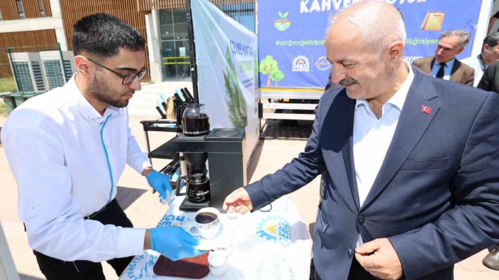 Gebze’de atıklarını getiren öğrenciler, geri dönüşüme katkı sağladıkları için ücretsiz kahve ikramı ile ödüllendiriliyor.