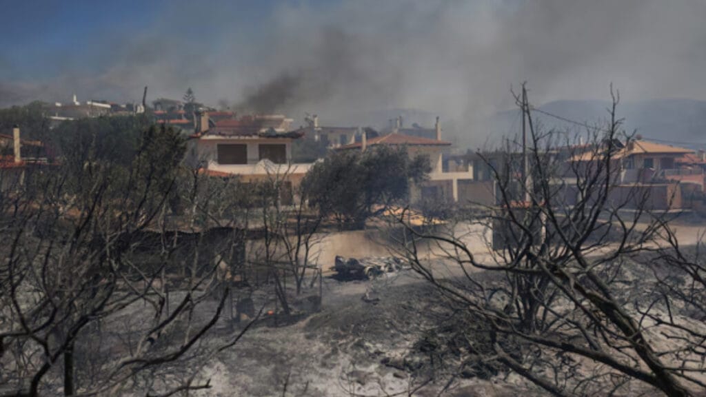Cuma günü Yunanistan genelinde, başkent Atina’dan Antik Olympia’ya kadar uzanan geniş bir alanda çıkan yangınlarda en az bir kişi hayatını kaybetti, evler ve tarım arazileri zarar gördü.